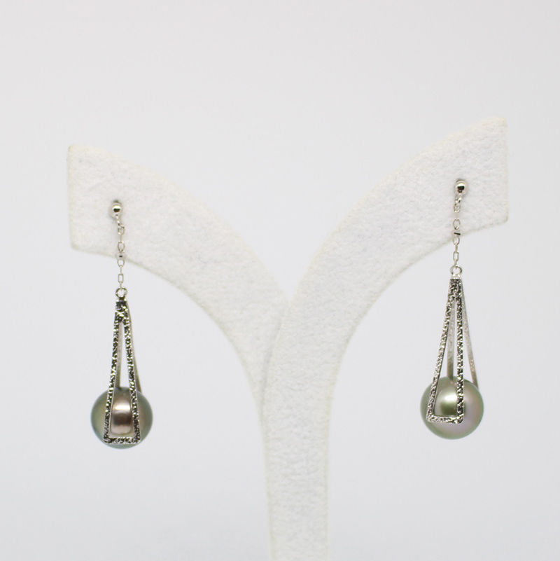 タヒチ黒蝶真珠のイヤリングはモダンさとエレガントな雰囲気が漂うつけるだけでカッコいい大人ジュエリーです。
